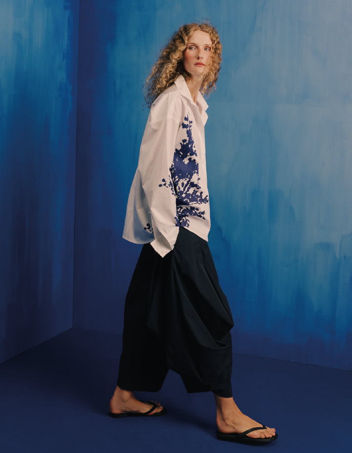 Maria Elena Villamil’s aesthetic is defined by sculptural lines, refined simplicity, and a deep connection to art, nature, and architecture. From this vision emerges Castaños en Flor FW '25, a collection inspired by Impressionist gardens and their textured brushstrokes. Soft contrasts and atmospheric prints shape a quiet, contemporary harmony.