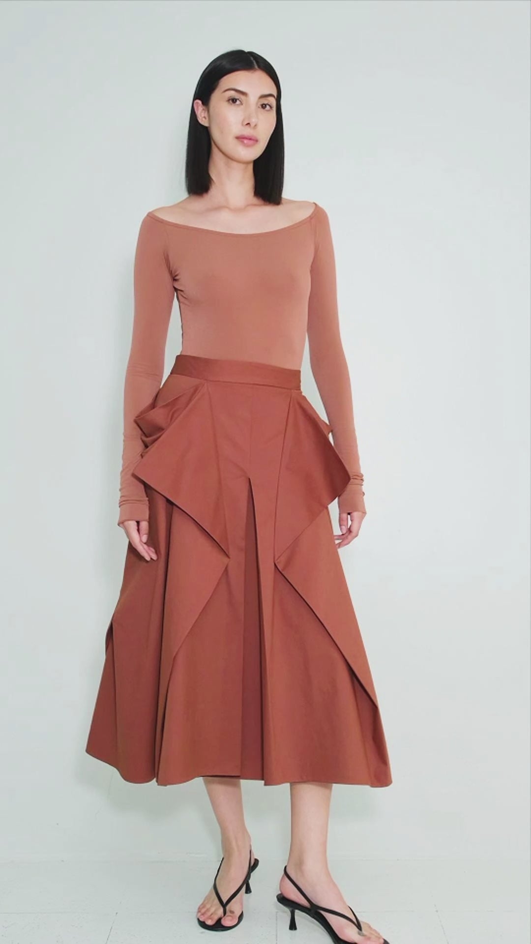 The Etapa Bodysuit features a flattering boatneck and sleek, form-fitting silhouette which highlights the collarbones and elongates the frame. It transitions seamlessly from day to night, pairing effortlessly with tailored trousers like the Esplendor II Pants or skirts like the Superficie or Nostalgia Midi Skirts.