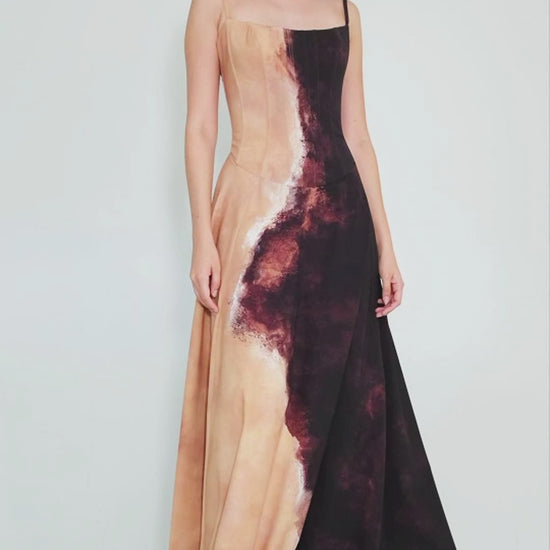 The Existencia Maxi Dress features a timeless silhouette with delicate straps and a tailored bodice that flows into a graceful, full-length skirt. Perfect for day-to-night transitions, it embodies a modern yet classic aesthetic.